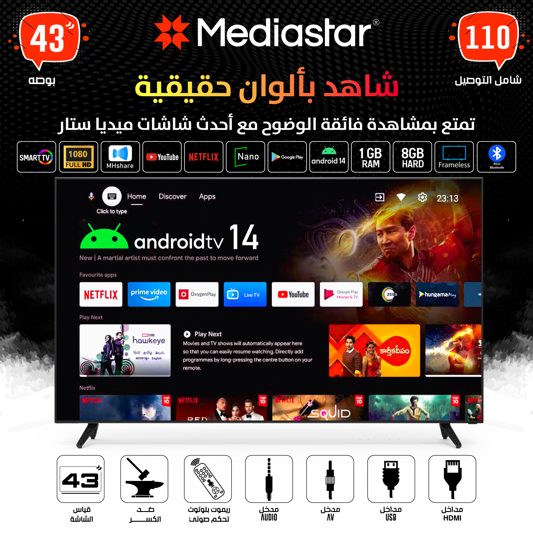 MEDIASTAR TV 43 inch ( ضد الكسر )
