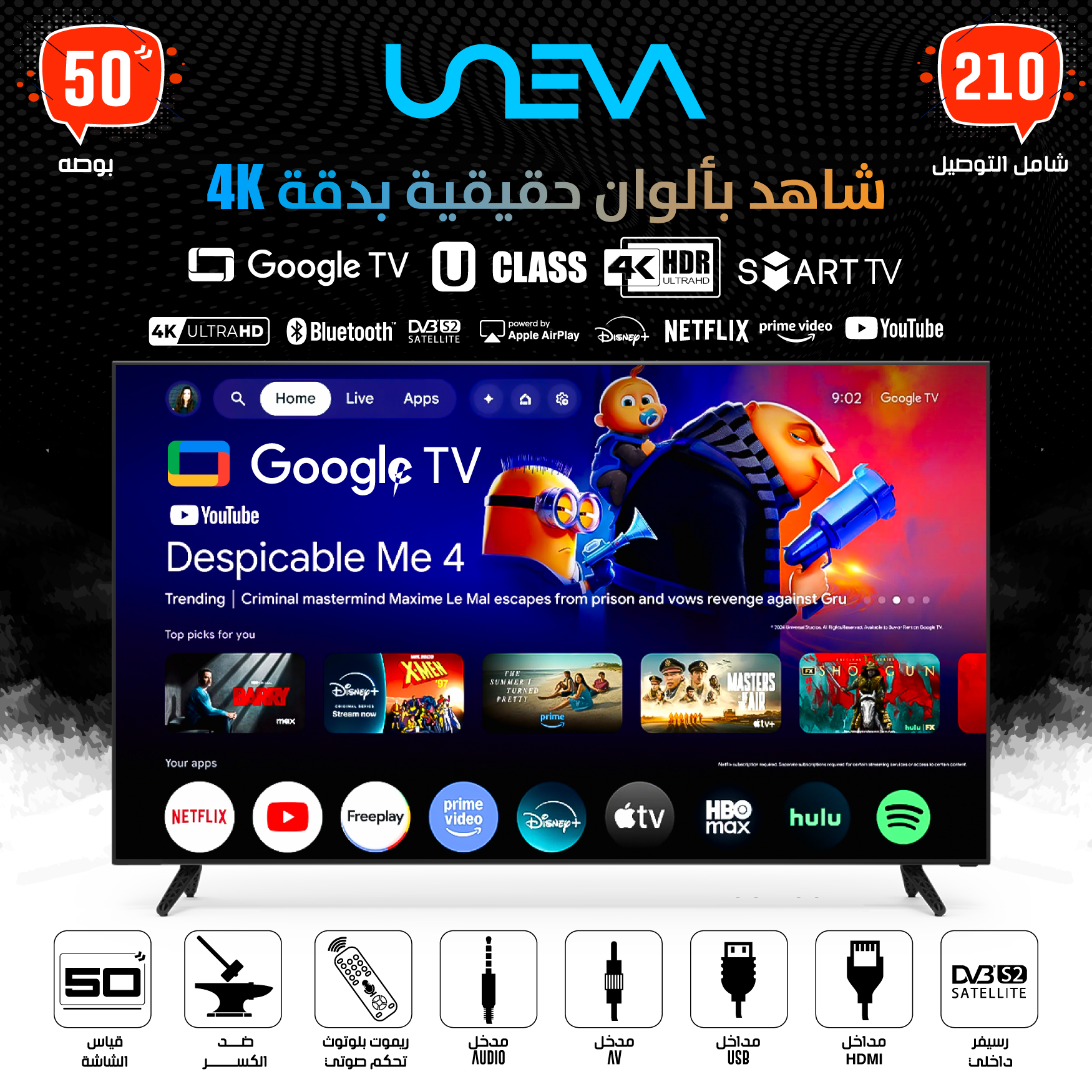 UNEVA TV 4K 50 inch ( ضد الكسر )